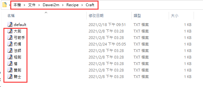 3.下圖製作裝備中的紅框選項是內建設定好的武器和裝備,不能變更