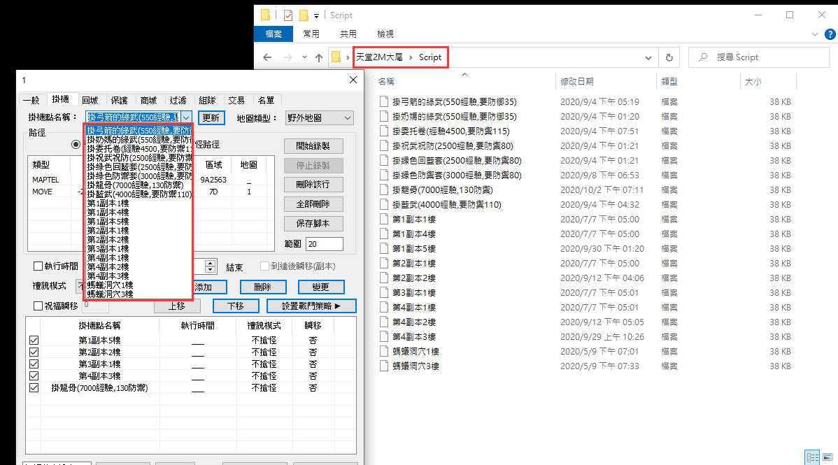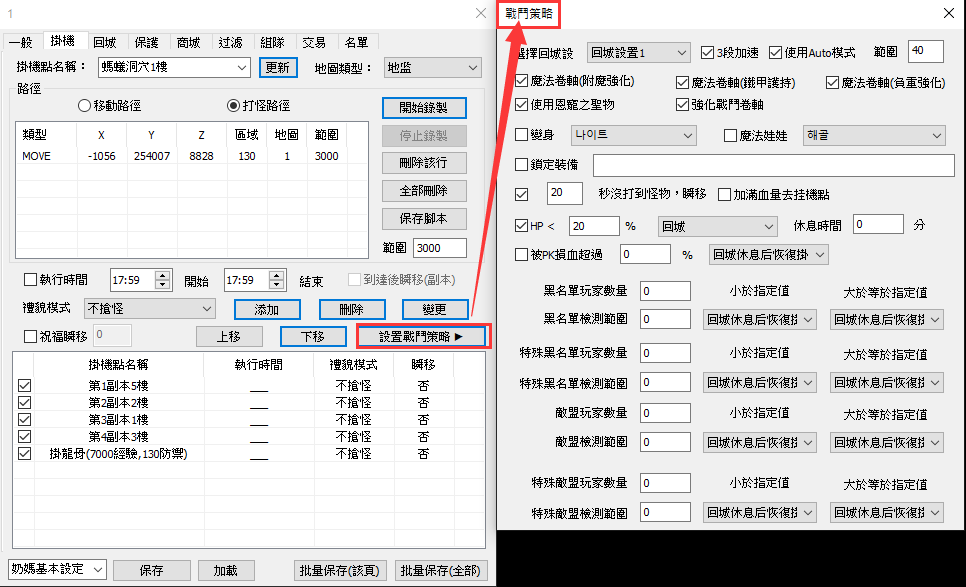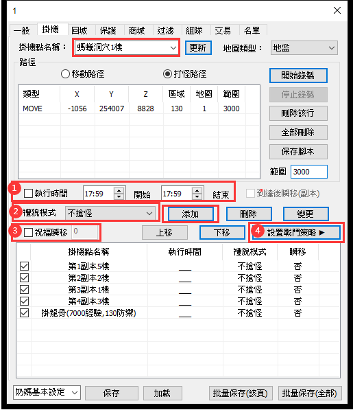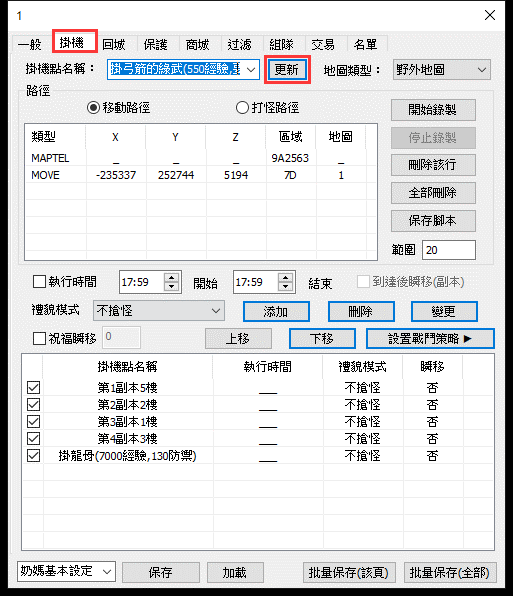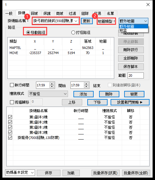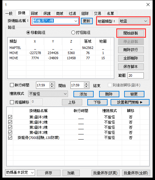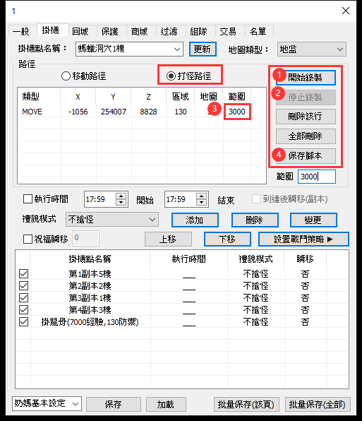 選擇已經錄製好的移動路徑開始錄製打怪路徑