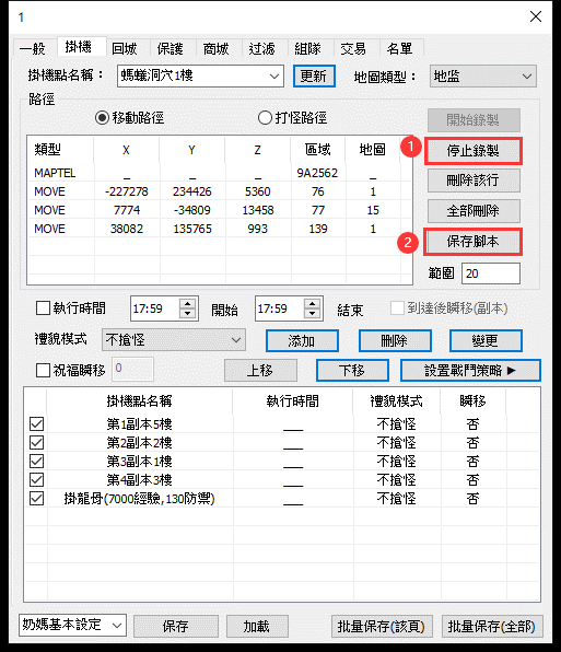 (4)點擊保存腳本,打怪路徑就錄製好了