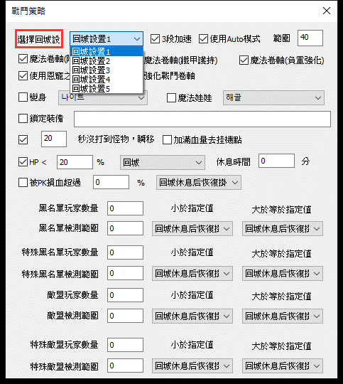 先選回城設置,再重新設定(只能重新設定,不能複製其它設置來改)