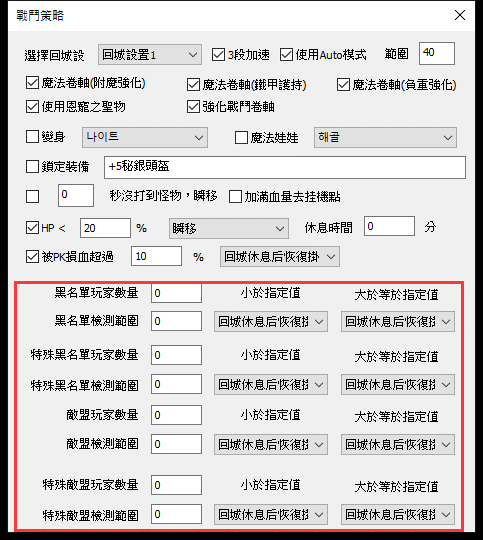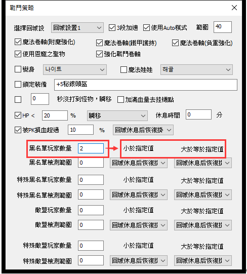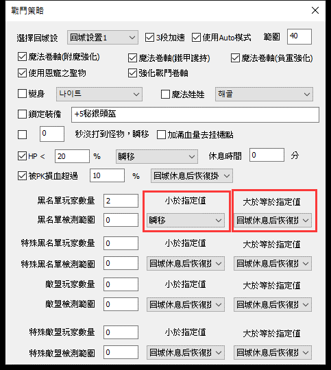 比如發現周圍有一個黑名單是瞬移,大於等於2個黑名單就回城