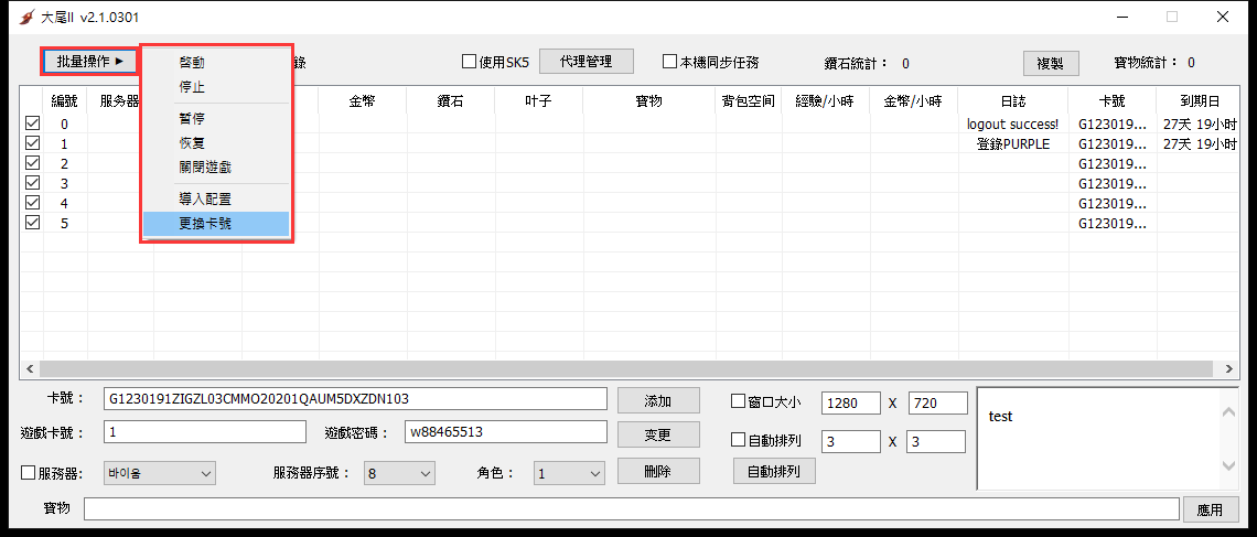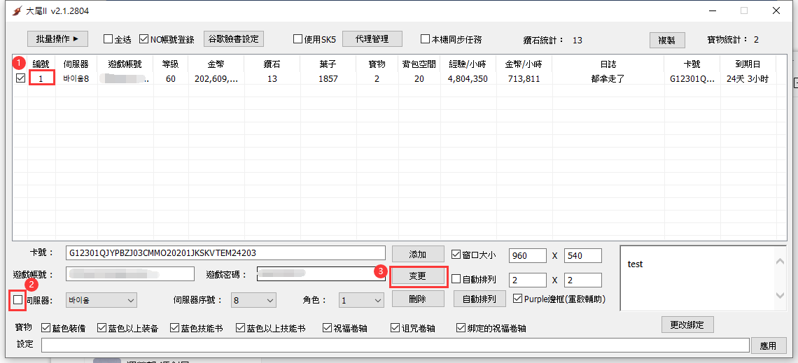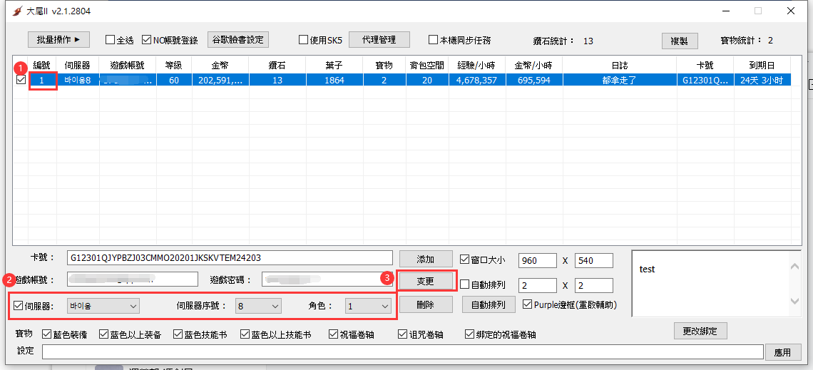 ③點擊變更,對應編號就成功綁定了伺服器和角色