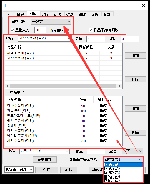 重要說明:上欄有添加不足就回城的物品,下欄都要添加購買!!!