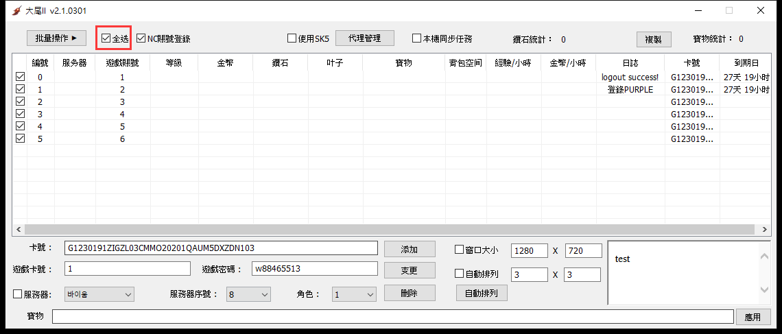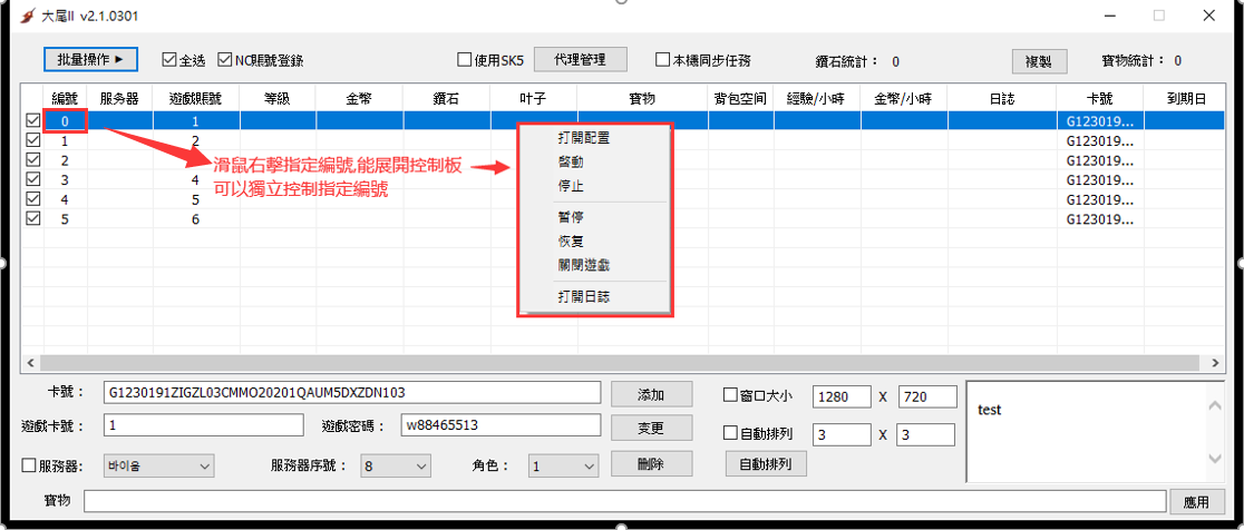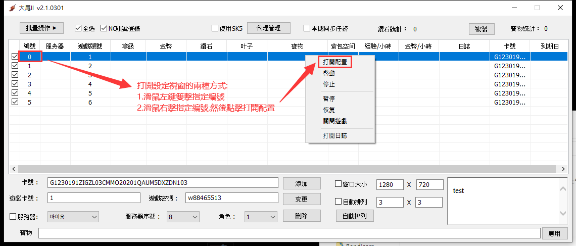 3.修改每個帳號對應的遊戲編號,編號不能相同