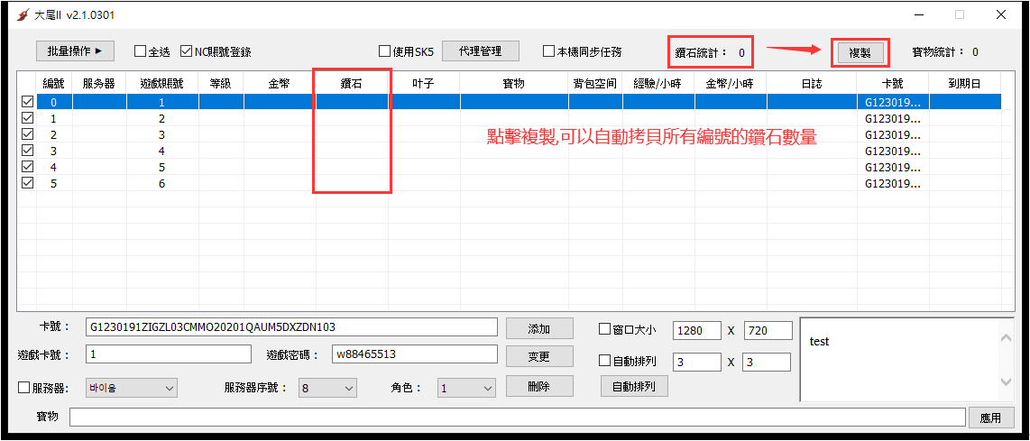 點擊複製按鈕,可以自動拷貝所有編號的鑽石數量